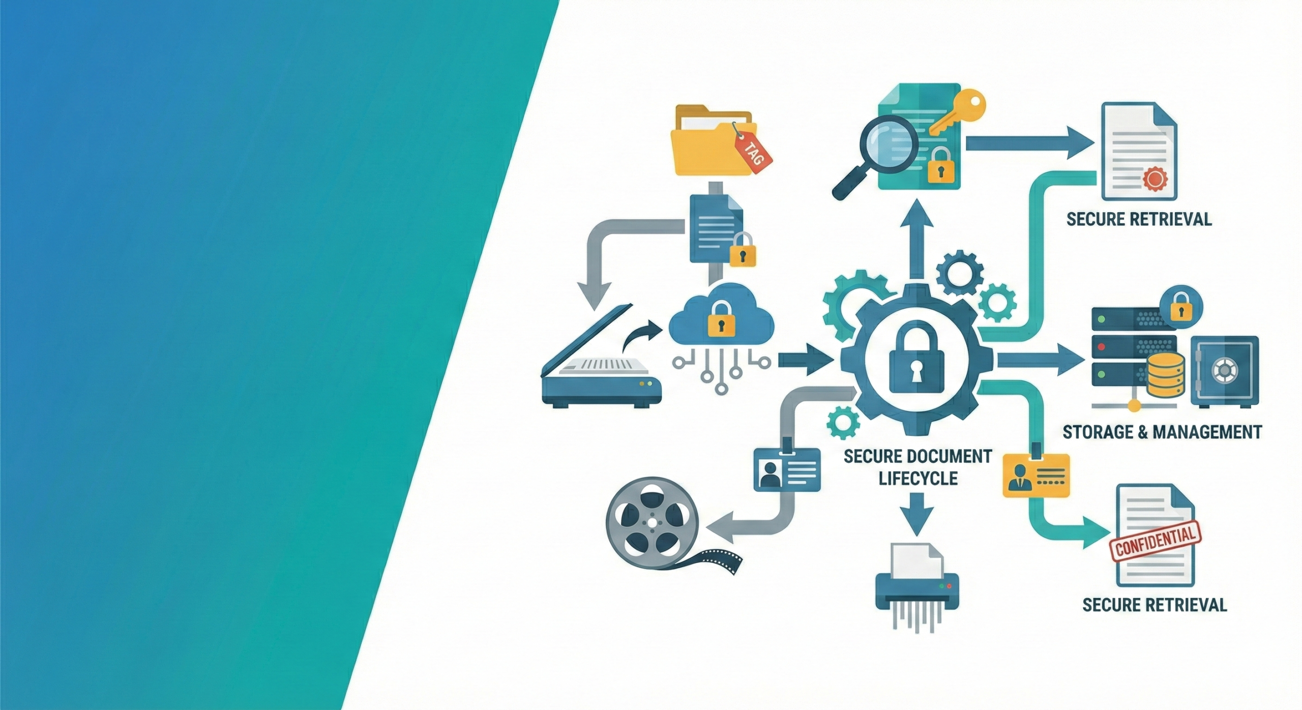 Secure document scanning, management, storage, and retrieval of confidential records and microfilm